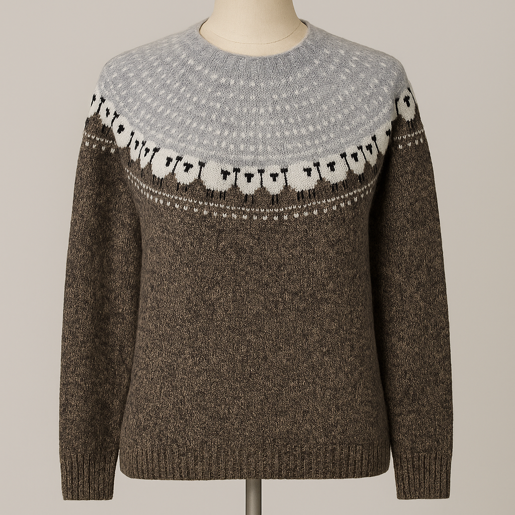 • Oriģināls aitas žakarda raksts – maigums un stils vienā